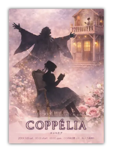 サンプルを組み合わせたり、配色やシルエットを変更することでオリジナルのバレエ発表会プログラムを制作できます。